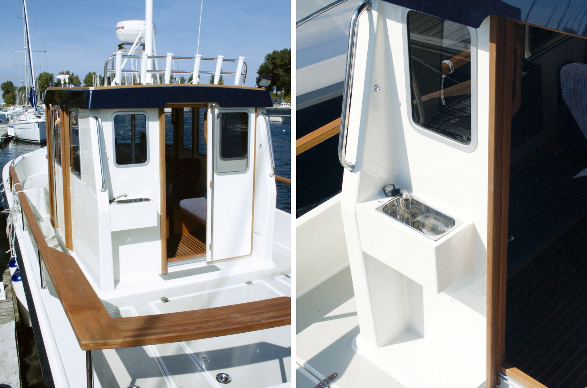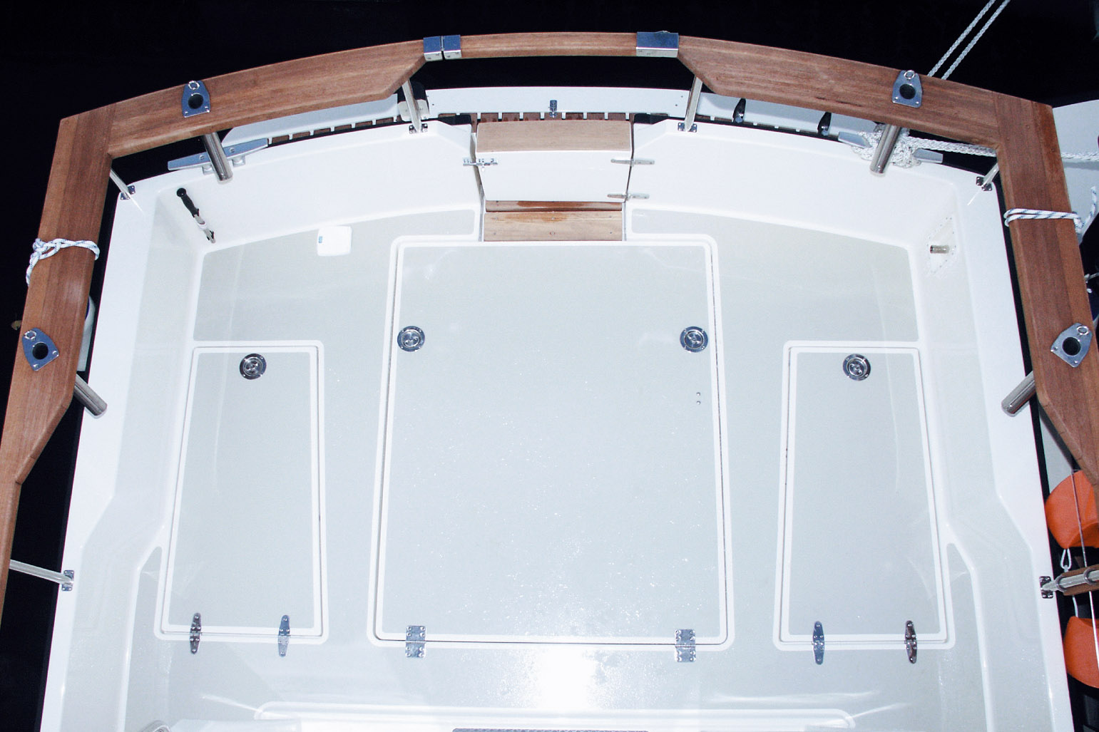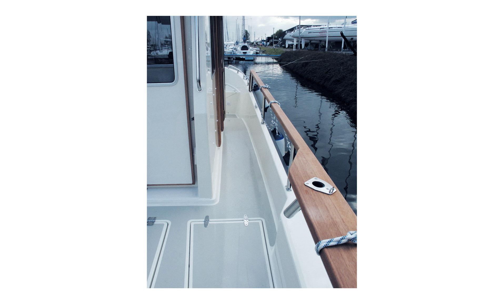 Široki bočni prolazi, visoka ograda te ručke omogućavaju slobodan i siguran prolaz palubom čak i za jako lošeg vremena. Istovremeno, praktična i ugodna kormilarnica pojačava osjećaj ugode na brodu.