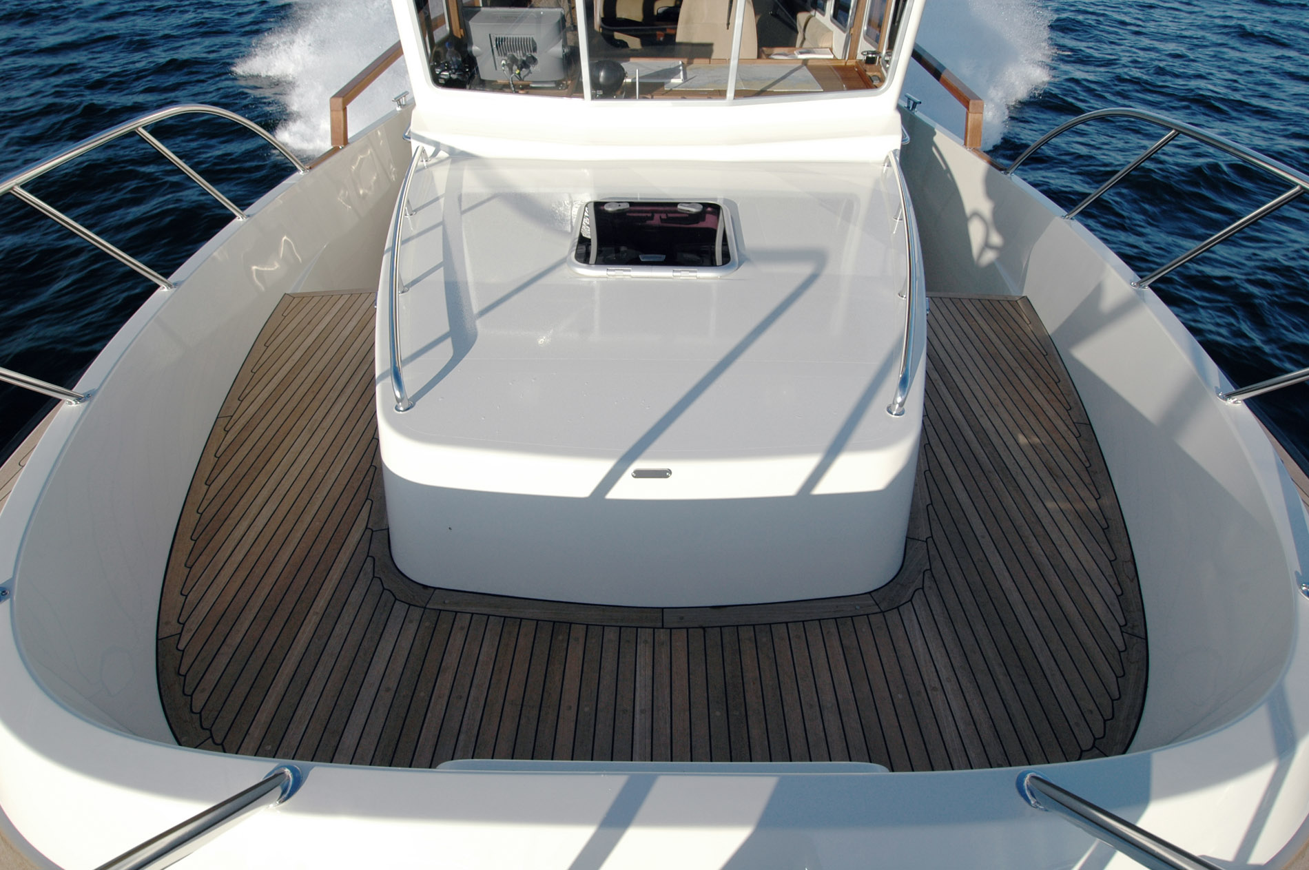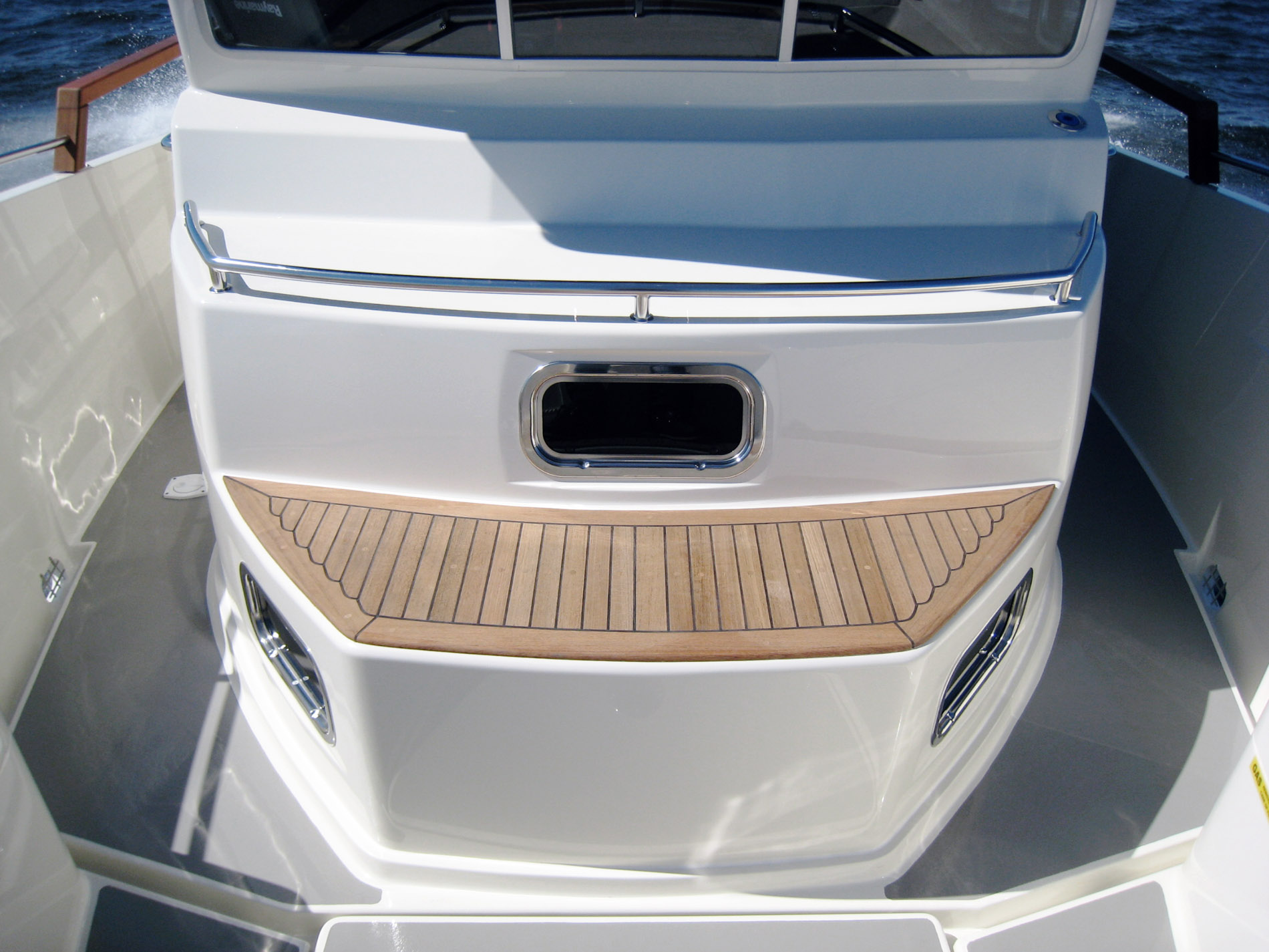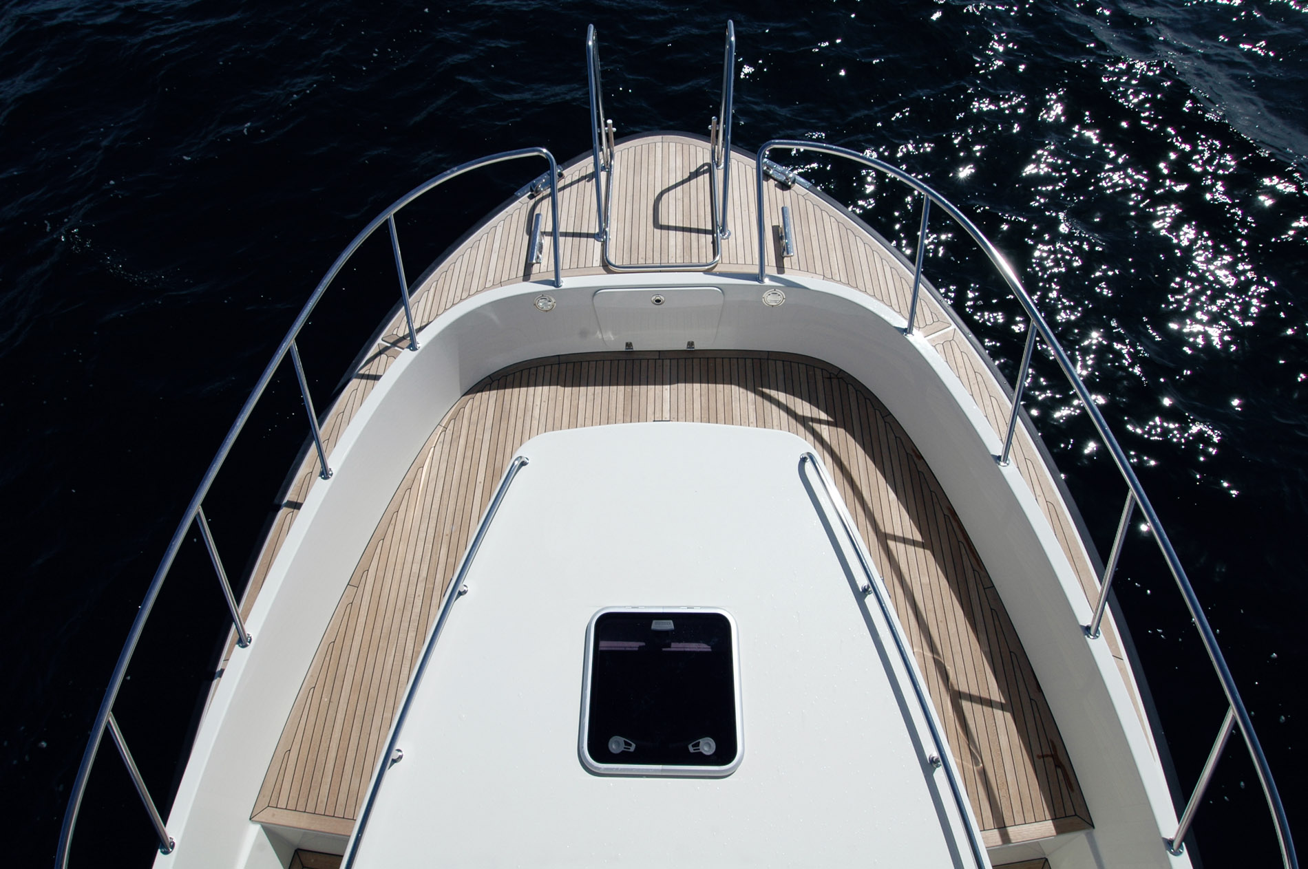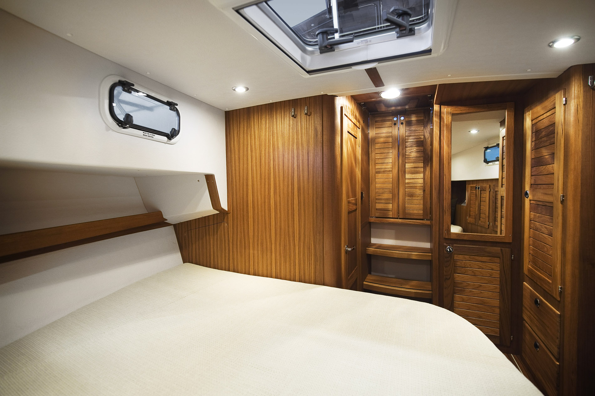 Povišeni most (hi-fly fly bridge) daje ovom plovilu nov, privlačan izgled i smješta komotno 5 osoba. Umjesto uobičajenog rasporeda sa 2 odvojena kreveta u prednjoj kabini, vlasnik može tražiti preinaku u kabinu sa duplim krevetom i pripadajućim toaletom i tušom.