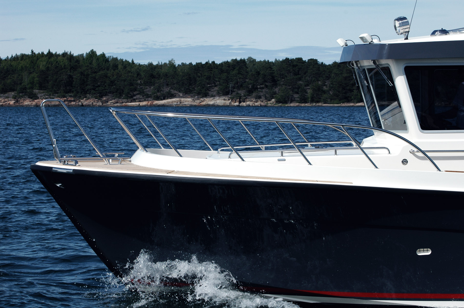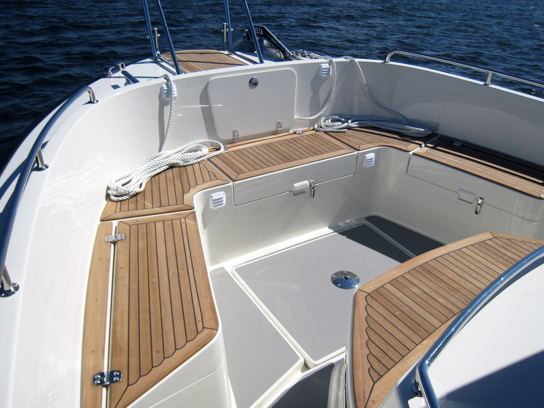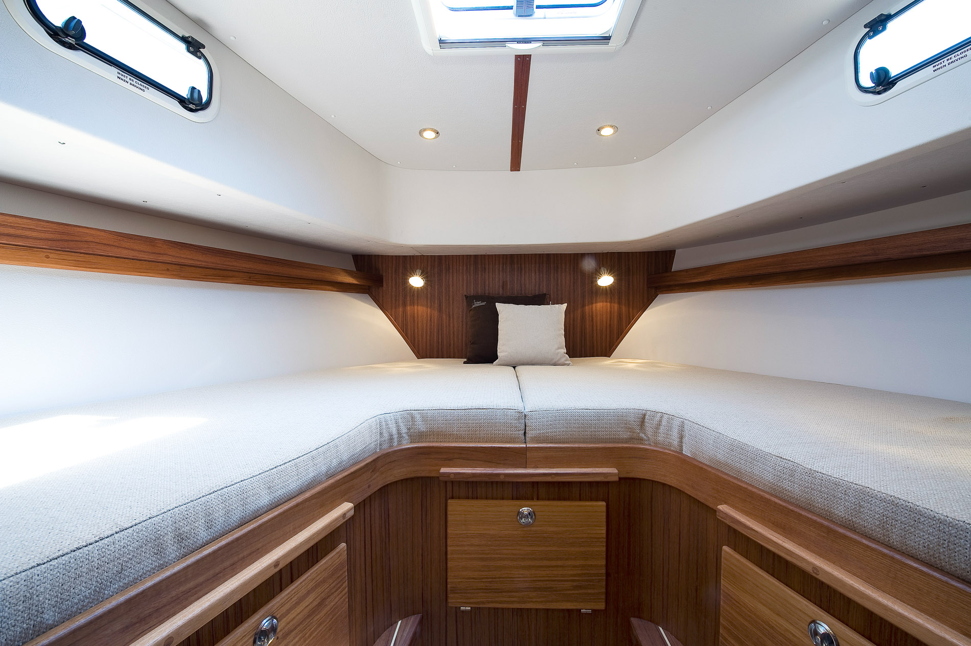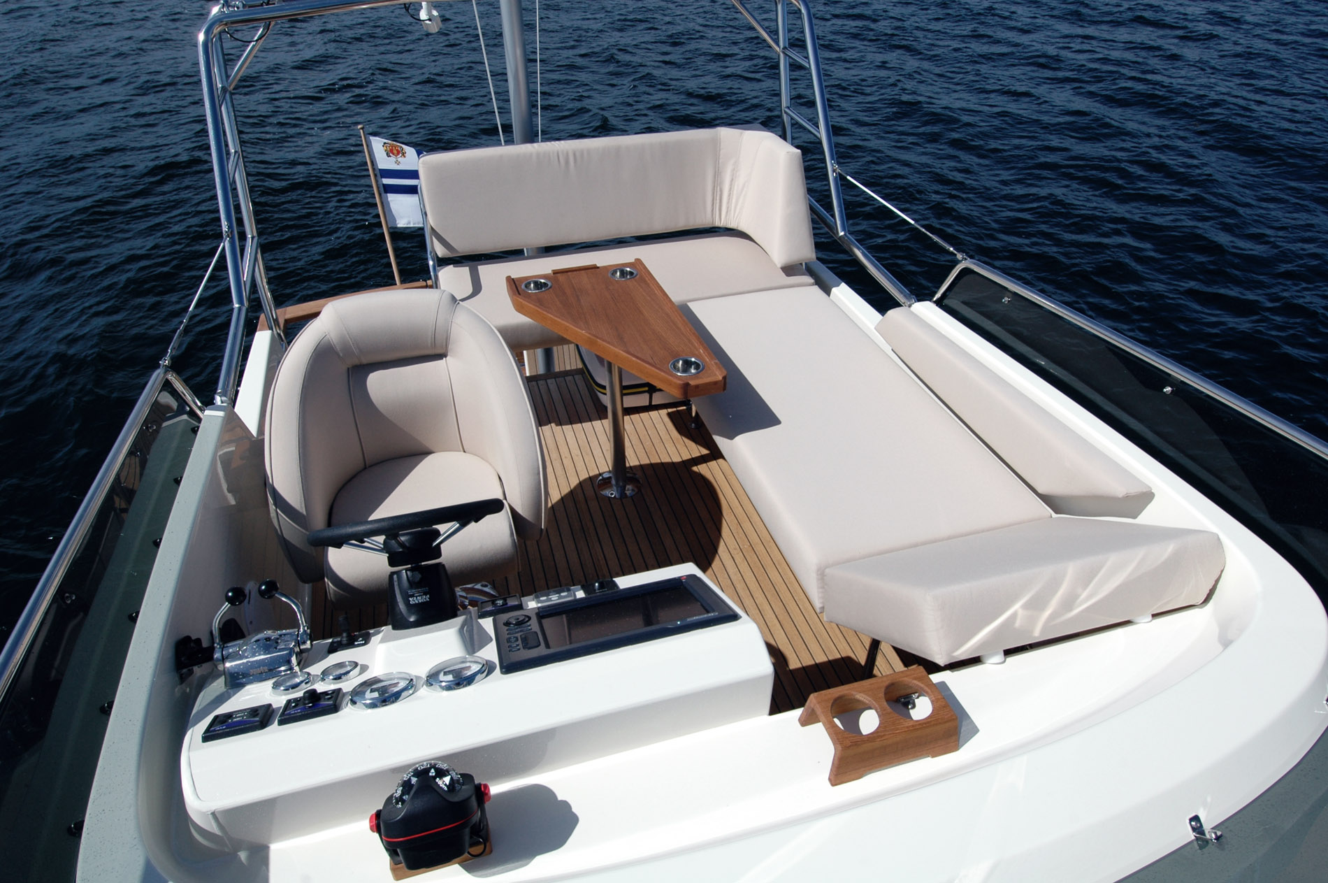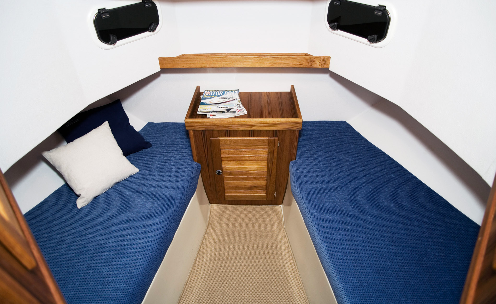 Povišeni most (hi-fly fly bridge) daje ovom plovilu nov, privlačan izgled i smješta komotno 5 osoba. Umjesto uobičajenog rasporeda sa 2 odvojena kreveta u prednjoj kabini, vlasnik može tražiti preinaku u kabinu sa duplim krevetom i pripadajućim toaletom i tušom.