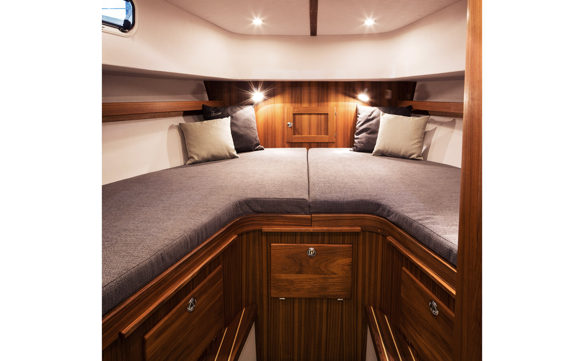Targa 37 će vas odvesti na odredište u besprimjernoj udobnosti i sigurnosti. Sa lakoćom prenosi više od nekoliko osoba i elegantno je dotjerana sa odvojenim kabinama kako bi osigurala privatnost i udobnost putnicima. Njen klasičan dizajn, čvrsta gradnja i nadmoćna kvaliteta izrade i upravljanja čine Targu 37 savršenim odabirom za duge i zahtjevne navigacije.