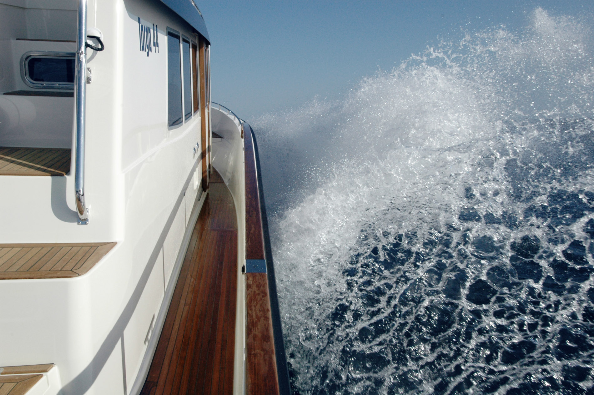 Pokrenuta 2007, Targa 44 praktički je isto brod kao Targa 42 ali sa modificiranom krmom zbog duže vodene linije i sa prostranijom strojarnicom. Targa 44 također je opremljena sa revolucionarnim motorima VOLO PENTA IPS sistemom, savršenim izvorom snage za dobro izbalansiranim koritom. 2009 god brod je osvojio nagradu za najprestižniji motorni brod godine sa komentarom žirija: