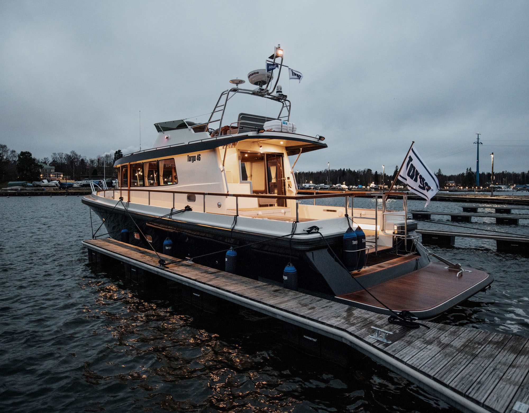 Pokrenuta u 2017 godini, Targa 46 nastavlja slavni put brodova Targa 42 i 44. Ne samo da je T46 veća od sestrinskih brodova, značajna je i povišena gornja paluba koja donju palubu dovodi na novu razinu. Zahvaljujući prostranijoj strojarnici, T46 može biti opremljena sa dva Volvo Penta D8-IPS800s za performase koje oduzimaju dah.